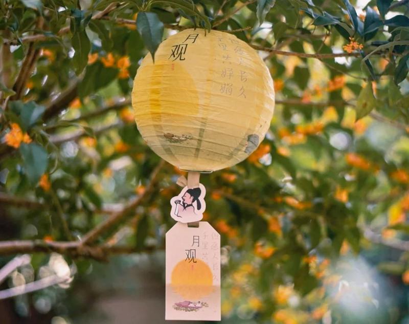 Важный атрибут праздника — «лунные фонари». Обычно они имеют круглую форму, но нередко встречаются и фигурные варианты (например, в виде драконов). Яркие фонарики разных форм и размеров украшают улицы и парки, создавая волшебную атмосферу; а местами с фонарями устраивают целые шествия. Домашние фонарики зажигают всей семьёй, развешивают в саду, а иногда, по старинной традиции, «пускают» их по воде или по воздуху.