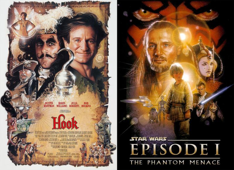 Постеры к фильмам «Капитан Крюк» (1991) и «Звёздные войны: Эпизод 1 – Скрытая угроза» (1999)