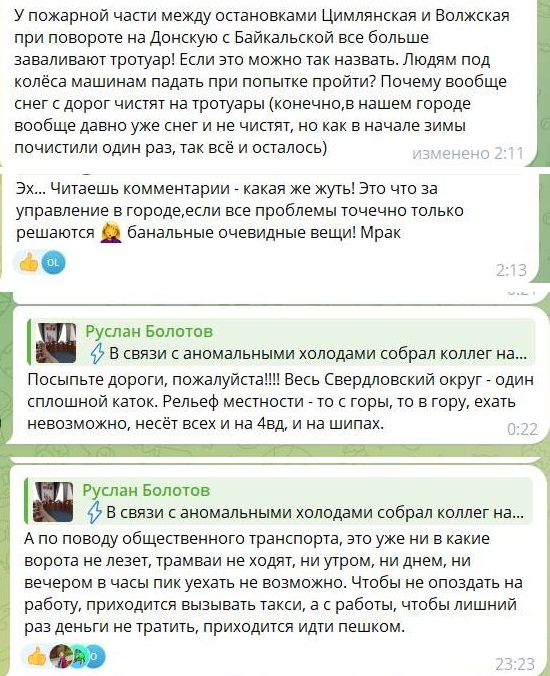 Типовые комментарии из канала мэра Болотова