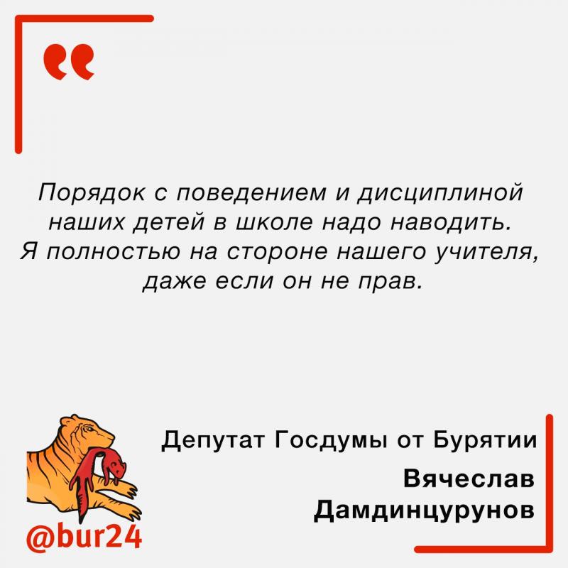 Не могли пройти мимо комментария Вячеслава Дамдинцурунова по поводу инцидента в сельской школе. Хоть политик и говорит в основном верные вещи, есть и то, что хотелось бы лично ему и остальным пояснить.