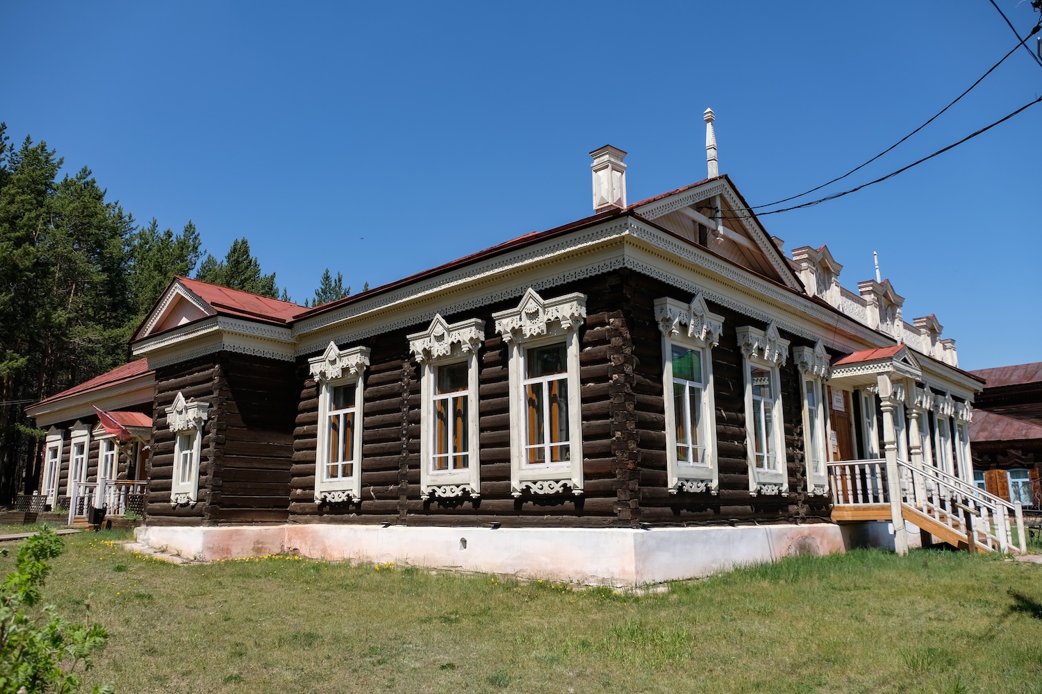 Дом Зайцева, построенный в 1897 году, например, был перевезен из села Надеино Тарбагатайского района. Это трехкамерная бревенчатая постройка («связь»): две продольные и четыре поперечные стены образуют горницу и жилу-избу с казенками на крыльце и сенях. Интерьер воспроизводит быт крестьянина-старообрядца XIX века. Дом ориентирован длинной стороной к улице. Четыре окна, выходящие на улицу, украшены разноцветным орнаментом с оленями. Наличники окон имеют резные узоры.