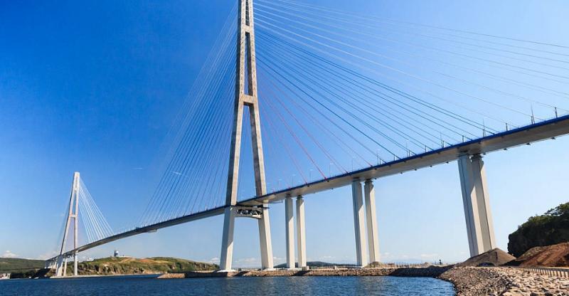 Русский мост во Владивостоке, построенный с использованием конструкций завода