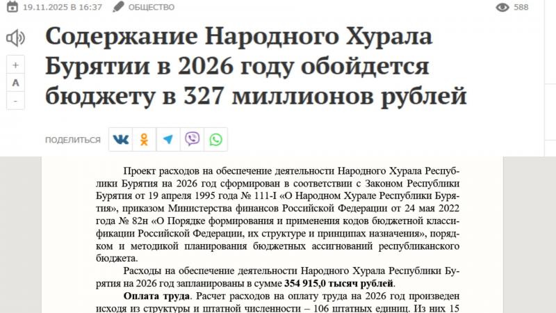 Но происходит ровно обратное. Расходы на содержание Хурала только растут. В 2023 году это было 300 миллионов. В 2025-м — 326 миллионов. В 2026-м — уже запланировано 355 миллионов. Рост на 18% за четыре года. Инфляцию депутаты компенсируют себе с лихвой, в отличие от бюджетников, чьи индексации часто не успевают за ростом цен в магазинах.