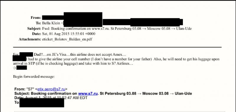 В массиве документов вскрылась переписка Лесли Грофф, правой руки и личной ассистентки Эпштейна. Речь шла о срочной покупке авиабилетов для пассажира по имени Балдан Болотов. В письме от 1 августа 2015 года Грофф указывает на источник денег: «На карту JE Visa... эта авиакомпания не принимает Amex».