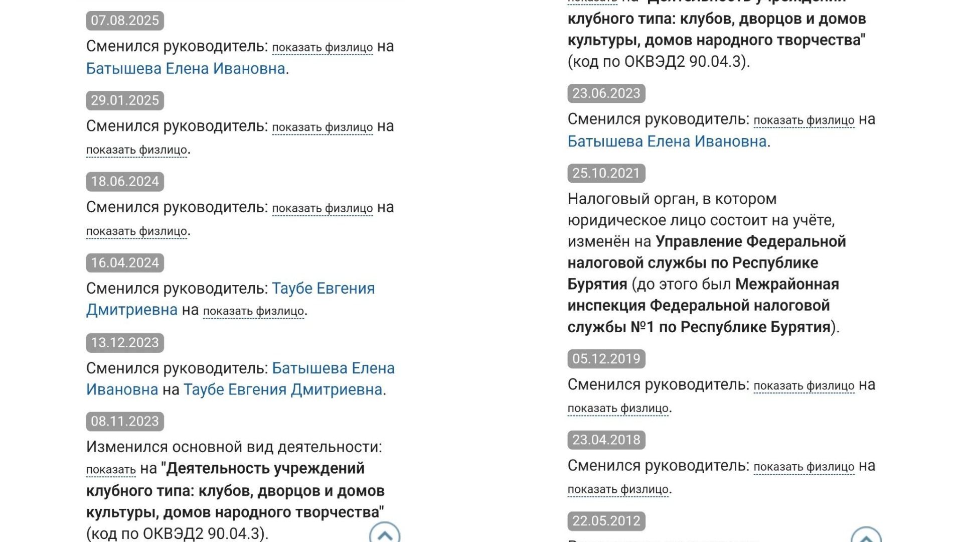 Старое здание советской постройки стоит на берегу Байкала и медленно разрушается без надлежащего ухода. Глава поселения Светлана Кривогорницына распределила три полные ставки сторожей-истопников клуба между шестью работниками. Каждый из них формально работает на половину оклада. Эта манипуляция позволила чиновнице трудоустроить в сельский клуб в два раза больше лояльных людей. Жители Максимихи утверждают, что двое из этих сотрудников вообще не выходят на работу.