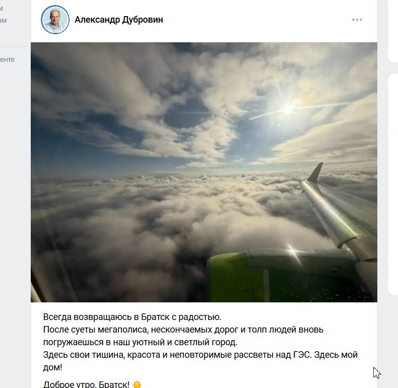 Может, кто не заметил, но добрая половина мэров Иркутской области неделю отсутствовала в регионе. Ездили на Всероссийский муниципальный форум «Малая Родина – сила России». Так, например, мэр Братска Александр Дубровин только что вернулся, запечатлев самолет с серебристым крылом.