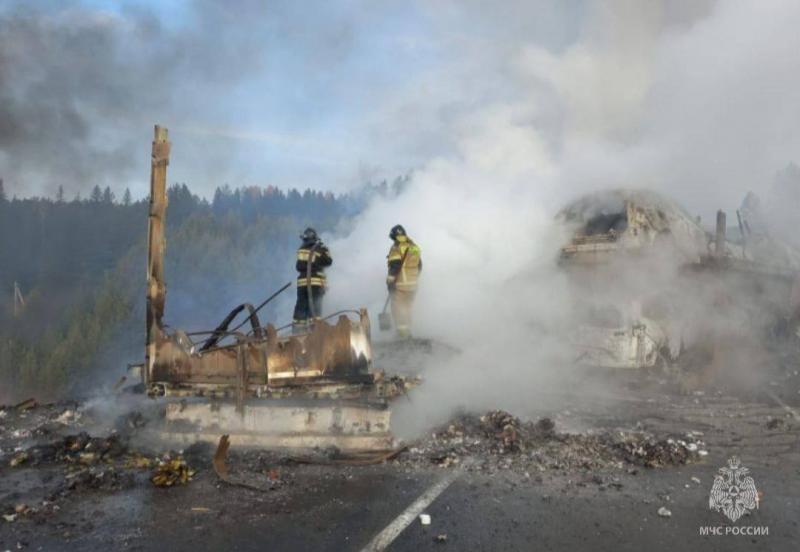 Всего в аварию у посёлка Камышет попали семь грузовых автомобилей и одна легковушка. Сгорели пять транспортных средств. Погиб водитель автовоза. Трое человек получили травмы, двоих из них увезли в больницу Нижнеудинска.