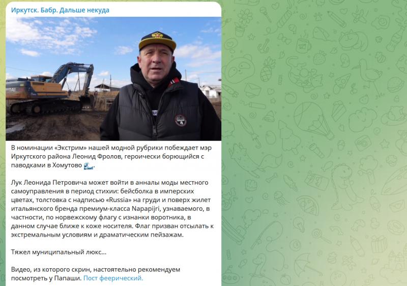 Помогаем мэру, кстати, не мы одни. Даже телеграм-канал «Иркутск политический», в скрепности и верности идеалам «политической стабильности и вертикали» которого сомневаться не приходится, не удержался от замечания мэру Иркутского округа, мягко говоря, «попутавшему берега».