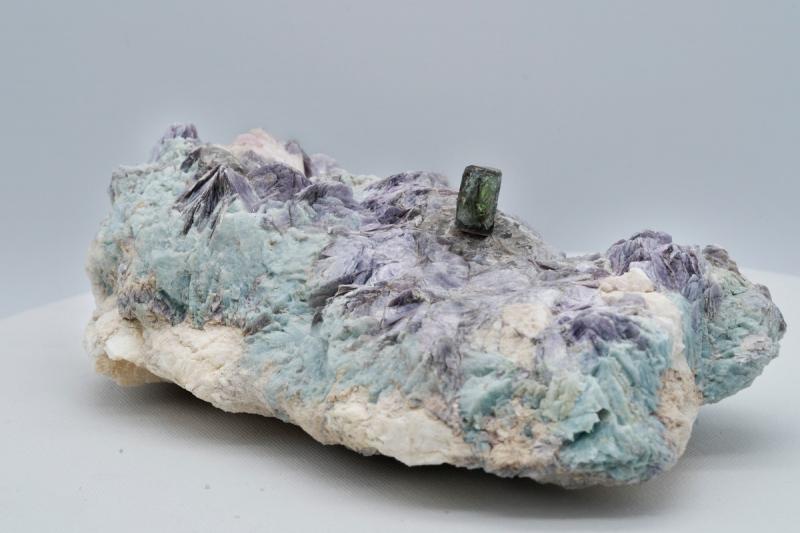 В экспозиции представлено более 70 образцов из турмалиновых пегматитов Забайкалья разных оттенков. Камнерезные и ювелирные работы выполнены мастерами Республики Бурятия. Посетители познакомятся с богатой палитрой минерала, местами добычи и геологическими условиями формирования камня, с искусством обработки и огранки, увидят крупные природные экземпляры и образцы разных форм.
