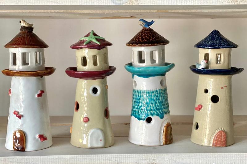 Участники смогут изготовить подсвечник для двух свечей: одну можно поставить в корпус маяка, а вторую — под съёмную башенку. Для создания такого изделия гостям необходимо раскатать глину в большой пласт и сделать корпус, подставку под верхнюю башню, маленький забор, фигурную решётку верхней части. После этого участники сделают крышу, соединят детали и приступят к декору.