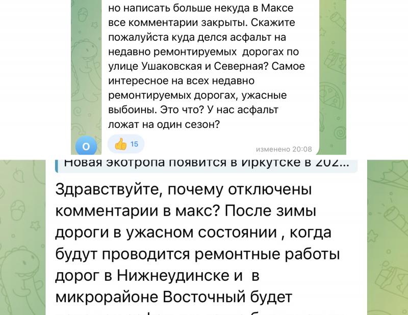 А тем временем чат губернатора Игоря Кобзева буквально ломится от гневных комментариев о ненадлежащем состоянии дорог. Жители Иркутска, Черемхово, Иркутского района и других территорий ежедневно требуют объяснений: почему со сходом снега обнажились многочисленные ямы. Причем даже там, где ремонт проводили еще в прошлом году.
