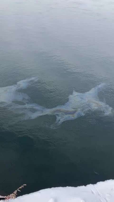 Масляные пятна на Енисее. 21 апреля 2023 года.