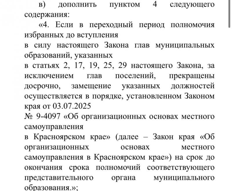 Если перевести текст с чиновничьего на человеческий, получается: если мэр написал заявление по собственному из мест не столь отдаленных, а Горсовет будет переизбираться в составе округа только в 2028 году, то действующие депутаты могут назначить временного мальчика для битья, на которого повесят в итоге все косяки при подготовке к 400-летию Красноярска, а потом вместе сложить лапки полномочия.