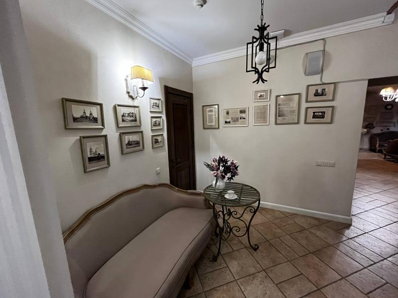 После реконструкции 2012 года старинный особняк сохранил кирпичную кладку, сводчатые потолки и даже бутовый камень на цоколе. Внутри всё выполнено в духе европейского камерного отеля: мягкий свет, дерево, винтажная мебель, штукатурка, приятные мелочи вроде подсвечников и живых цветов