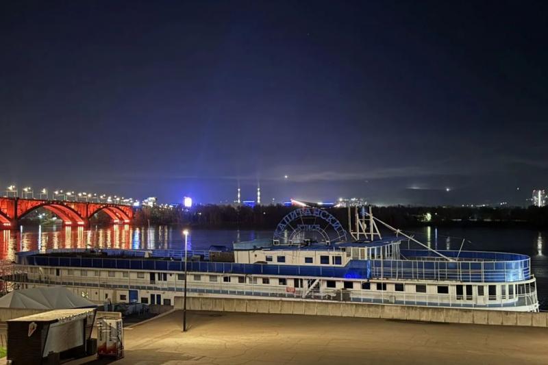 В Красноярске выставили на продажу крупный речной теплоход, который стоит у центральной набережной.