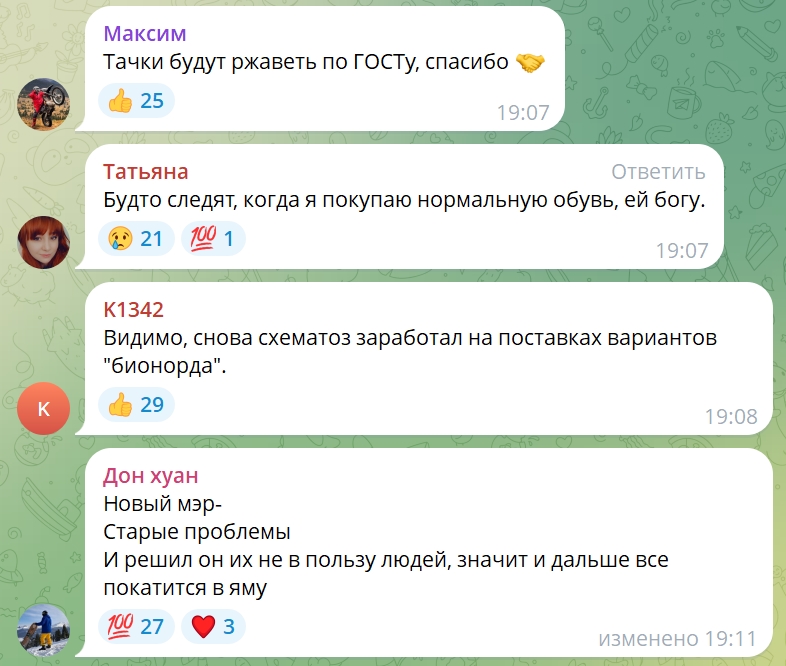 Похожая ситуация происходит и вокруг новости про отказ от технической соли и использование вместо неё ПГРТ и песчано-щебёночной смеси. Только теперь общественность разделилась на несколько лагерей. Кто-то благодарит Верещагина за верное решение, кто-то кричит о том, что вернётся «Бионорд», а кто-то подмечает, что недовольные будут всегда.