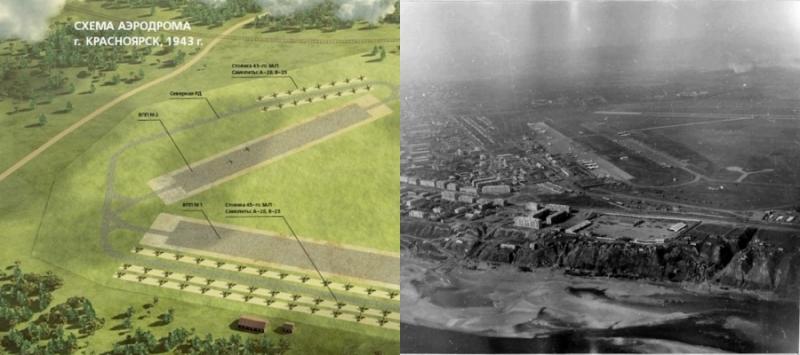 Известно, что полноценный аэродром появился в 1940-х годах. В начале войны Красноярск сделали одной из главных авиабаз Сибири, к 1943 году на аэродроме появились две километровые бетонные взлётно-посадочные полосы, четыре ангара, служебные здания и другие сооружения. Благодаря этому аэродрому присвоили первый класс.