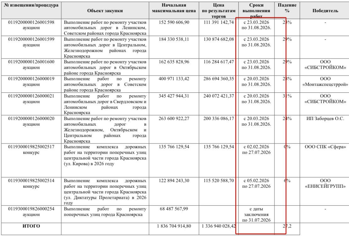 Кстати, «Енисейгрупп» именно та компания, которая в прошлом сезоне никак не могла вовремя закончить ремонт дороги и получила красноярское последнее предупреждение от временно исполняющего обязанности главы Красноярска Романа Одинцова.