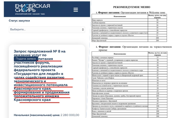 Кстати, недавно стало известно, что бесполезная корпорация «Енисейская Сибирь» тоже любит вкусно покушать, особенно за счёт налогоплательщиков. Смотрите сами.
