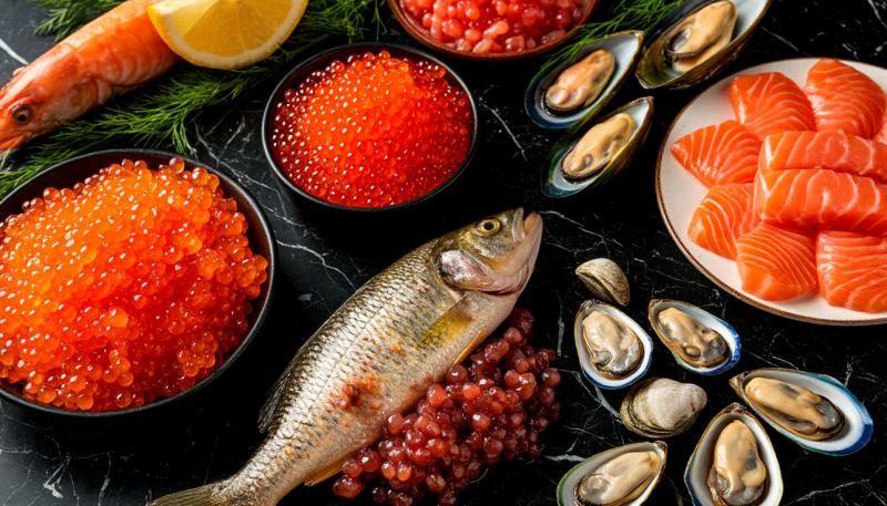 В меню, например, канапе с красной рыбой и бужениной, блинные роллы с красной икрой, сыр с оливками, клубникой и мятой, сыр домашний с виноградом, черри с моцареллой, канапе с форелью и муксуном.