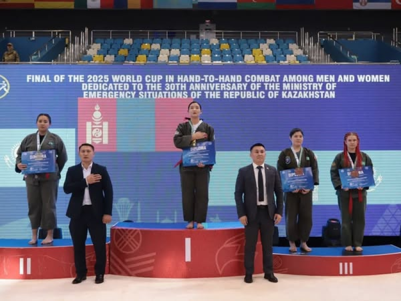В Астане завершился чемпионат мира по рукопашному бою Astana World Cup 2025, где монгольская сборная добилась впечатляющего результата. Команда из 11 спортсменов под руководством подполковника Х. Оналбека, представляющая Национальный университет внутренних дел Монголии, завоевала 13 медалей. Среди них две золотые, четыре серебряные и семь бронзовых.