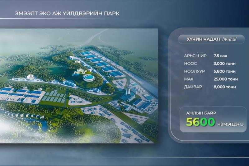 Строительство эко-индустриального парка (ЭИП) «Эмээлт» идёт полным ходом. На 540 гектарах в местности Хан-Уул (в 30 километрах от Улан-Батора) должна возникнуть полноценная замкнутая экосистема переработки животноводческого сырья. Его обсуждают уже больше десятилетия, но лишь в 2024 году на площадке появилось первое здание. Это был корпус бизнес-инкубатора и учебно-производственного центра. Сейчас сразу на нескольких участках проходят подготовительные работы, завершить проект планируют в ближайшие три года.