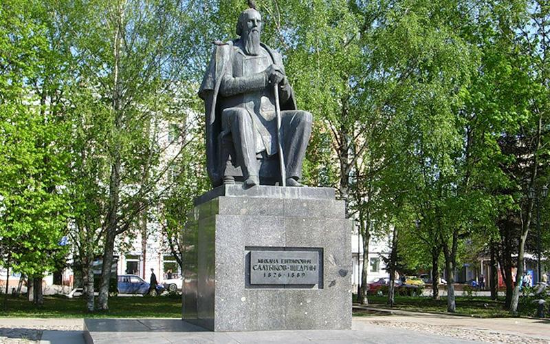 Памятник Салтыкову-Щедрину работы скульптора Олега Комова на Тверской площади в Твери