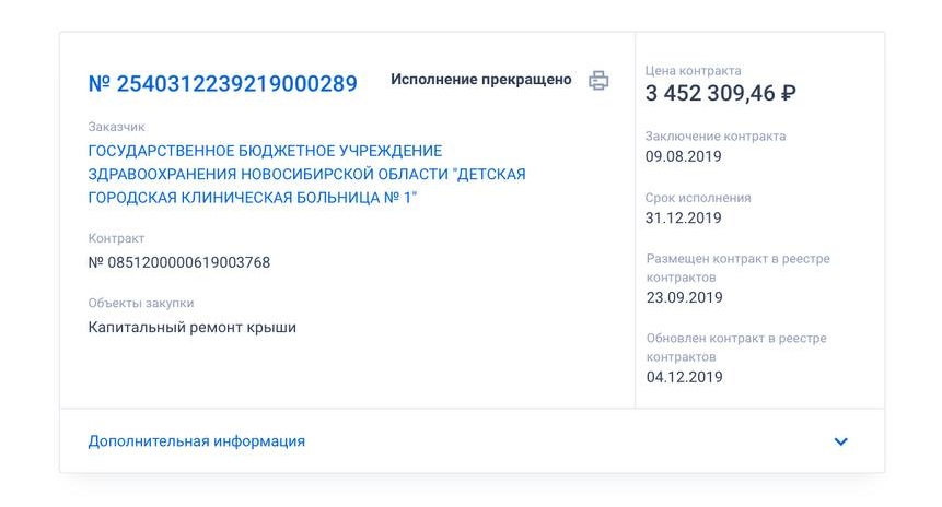 Главный контракт на ремонт кровли, который должен был обеспечить безопасность здания, был заключён 9 августа 2019 года с компанией «Арнада ТСК» (ОГРН 1145476161731). Стоимость работ — 3,5 миллиона рублей.