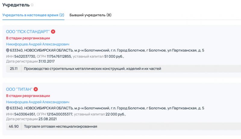 Андрей Никифорцев, очевидно, стал настоящим «похоронщиком» юридических лиц. Он создавал и ликвидировал череду компаний, получавших госзаказы (включая «Торгресурс», «Стройресурс», «Димакс»), а его новые структуры уже проходят стадию реорганизации. Это похоже не на случайность, а на отлаженную модель ухода от последствий после освоения бюджетных средств.