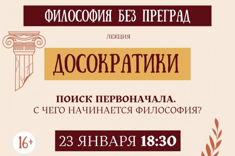 23 января Модельная библиотека имени Салтыкова-Щедрина приглашает всех желающих старше шестнадцати лет на лекцию «Философия без преград: досократики».