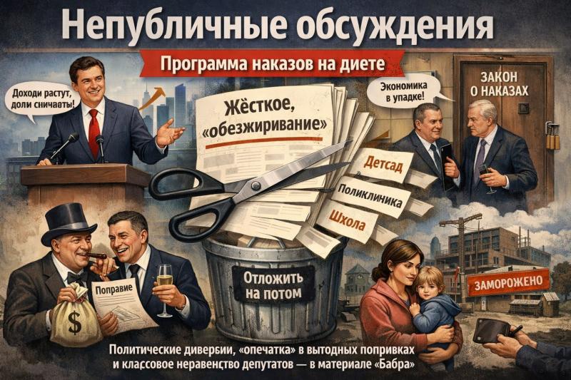 Пока мэр Новосибирска Максим Кудрявцев рассказывает о росте доходов и снижении долговой нагрузки, региональные власти подтверждают упадок экономики. Дело дошло даже до закона о программе наказов, происходит жестокое «обезжиривание» одного из самых важных сводов проектов. Многие социально значимые объекты будут молча перенесены на следующее десятилетие. Политическая диверсия, выгодные парламентские «опечатки» и классовое неравенство депутатов — в материале Бабра.