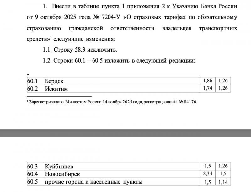 Центральный банк России внезапно осознал, что задирать территориальный коэффициент (КТ) для Новосибирска до заоблачных 3,12 было, мягко говоря, перебором. Согласно новому проекту регулятора, стоимость обязательной страховки в регионе может заметно снизиться уже в апреле 2026 года. Для самого Новосибирска коэффициент планируют опустить до 2,34, Бердску обещают снижение с 2,48 до 1,86, а Искитиму — до 1,74. Остальные населённые пункты области тоже не обделили, там планка должна упасть с 2 до 1,5. Такая щедрость стала возможна только потому, что правоохранители наконец-то начали активно работать и реально ловить страховых мошенников.