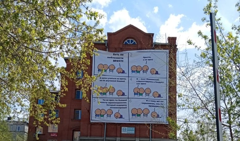 «Это не мой. Там есть вещи не очень корректные. Я врач, я заслуженный врач Российской Федерации. Я до 2001 года был действующим хирургом. Я сейчас написал заявление в МВД, чтобы разобраться, потому что все отказываются от этого плаката, говорят, что это не они. Мы подали заявление в МВД, а дальше будем думать, и решать, смотря кто заказчик».