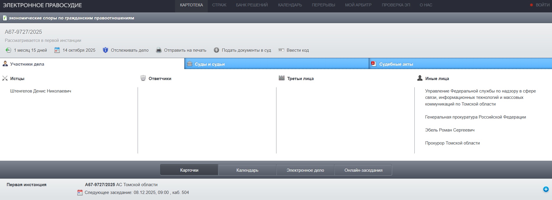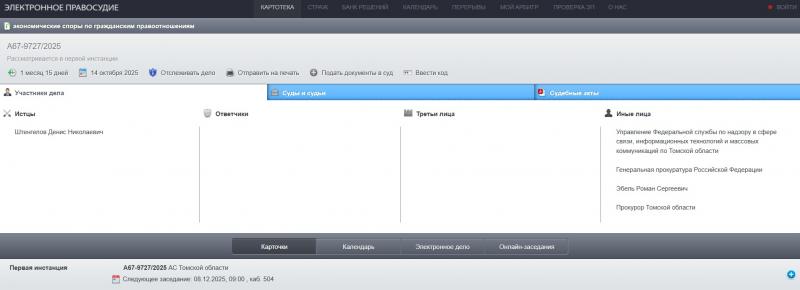 Процесс, стартовавший как рядовой гражданский спор, мгновенно приобрёл федеральный масштаб и отчётливый политический окрас. Дело возбудили 20 октября, и изначально ответчиком должна была выступать региональная прокуратура. Однако система быстро повысила ставки. 11 ноября суд удовлетворил ходатайство о замене участника: вместо томских прокуроров в разбирательство вступила Генеральная прокуратура РФ. Та самая структура, которая буквально месяц назад катком проехалась по бизнесу Штенгелова в Тверском суде Москвы, добившись полной конфискации имущества в рекордные сроки.