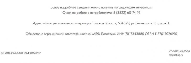 Статус регоператора по вывозу мусора в Томске и Томском районе остаётся за «АБФ Логистик». Договор продлили до 31 декабря 2026 года. На сайте компании уже появилась информация о продлении контракта на вывоз ТКО в седьмой зоне. Также «АБФ Логистик» продолжает работать в шестой и восьмой зонах.