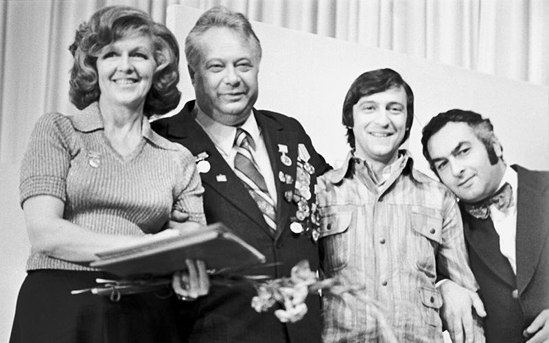 Валентина Леонтьева, Николай Озеров, Геннадий Хазанов и Левон Оганезов. 1962 год