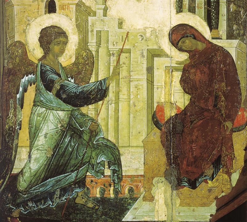 «...послан был Ангел Гавриил от Бога в город Галилейский, называемый Назарет, к Деве, обрученной мужу, именем Иосифу, из дома Давидова; имя же Деве: Мария. Ангел, войдя к Ней, сказал: радуйся, Благодатная! Господь с Тобою; благословенна Ты между женами. Она же, увидев его, смутилась от слов его и размышляла, что бы это было за приветствие. И сказал Ей Ангел: не бойся, Мария, ибо Ты обрела благодать у Бога; и вот, зачнешь во чреве, и родишь Сына, и наречешь Ему имя: Иисус. Он будет велик и наречётся Сыном Всевышнего, и даст Ему Господь Бог престол Давида, отца Его; и будет царствовать над домом Иакова во веки, и Царству Его не будет конца».