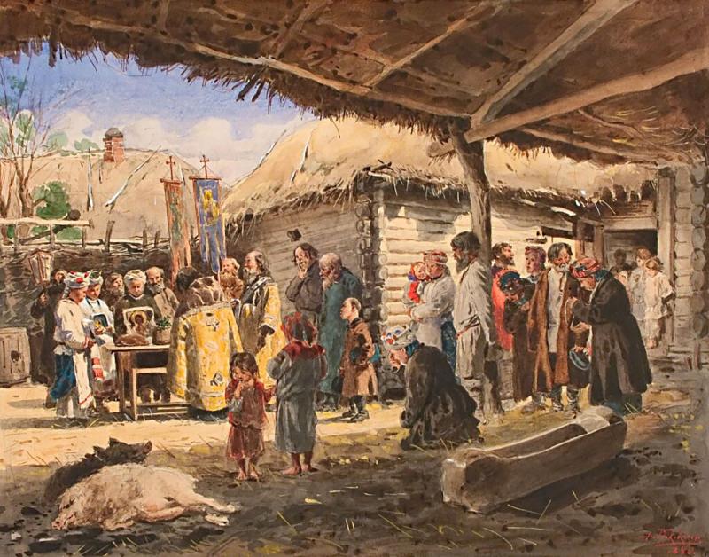 По завершении службы все начинали приветствовать друг друга: «Христос воскресе!» — «Воистину воскресе!» Люди «христосовались» — обменивались крашеными яйцами, обнимались и целовались. После окончания литургии «пасочники» с куличами, пасками и яйцами в руках выстраивались в церковной ограде, а священник с молитвой окроплял еду святой водой. Некоторые прихожане прямо из церкви отправлялись на кладбище, чтобы «похристосоваться» там с покойными родственниками, поздравить их с праздником, и лишь потом шли домой — «разговляться на Пасху».