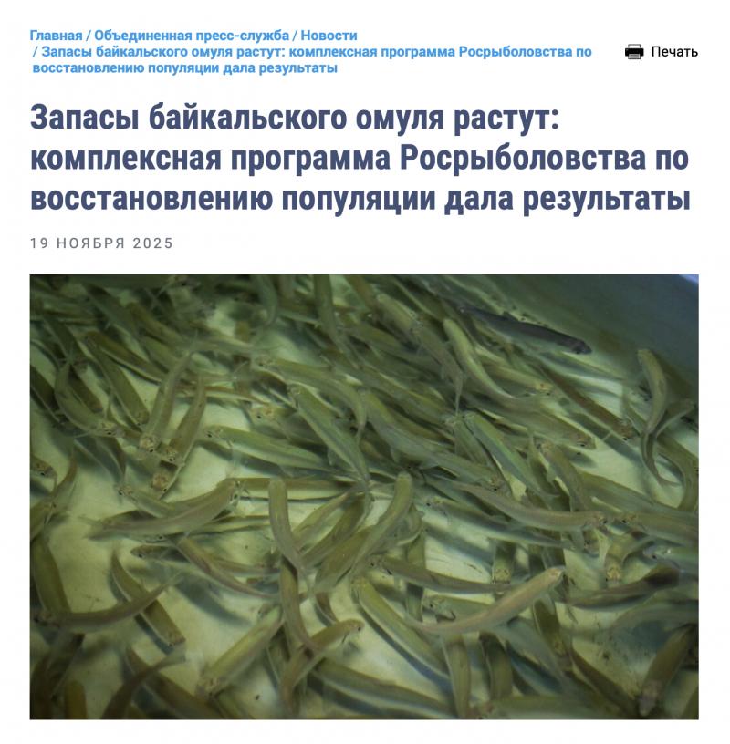 Всё бы ничего, если бы буквально в то же время пресс-служба Росрыболовства не сообщила противоположное: биомасса омуля выросла. Если в 2017 году она составляла 7,5 тысячи тонн, то уже в 2024-м достигла почти 11 тысяч тонн. Рост зафиксировали ежегодные экспедиции ВНИРО, подведомственного той же структуре. Более того, специалисты уже изучают возможность открытия промысла в 2027-2028 годах. После многолетнего запрета возврат к массовому вылову омуля может указывать только на устойчивый и продолжающийся рост его популяции.