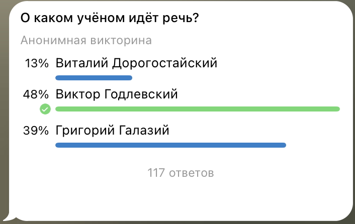 Телеграм-канал «Бурятия. Бабр. Дальше некуда» предложил читателям угадать, о каком учёном идёт речь. Большая часть опрошенных (48 %) угадала, что это Виктор Годлевский. Про Григория Галазия мы писали ранее.