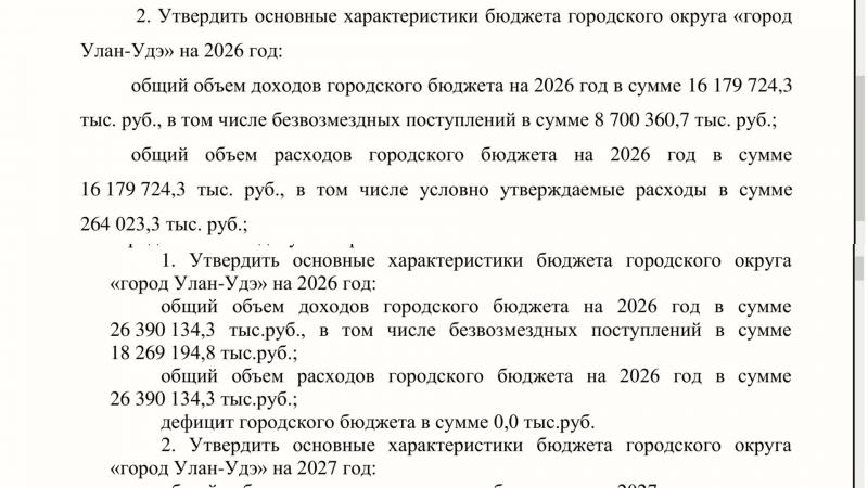 Бюджет Улан-Удэ на 2026 год: взлёт на десять миллиардов и плановое падение