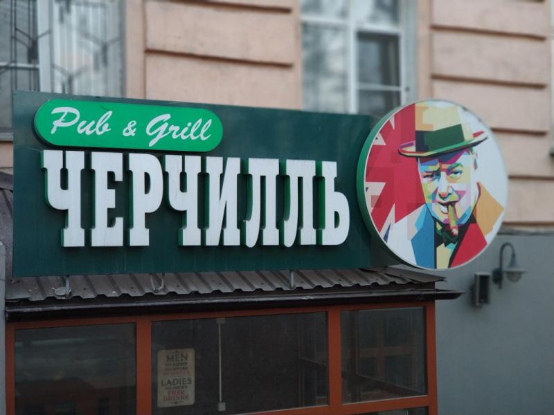 Огородник Кушнарёв, выпивая и закусывая в баре "Черчилль", мучается от того, что сэр Уинстон плохо относился к России.