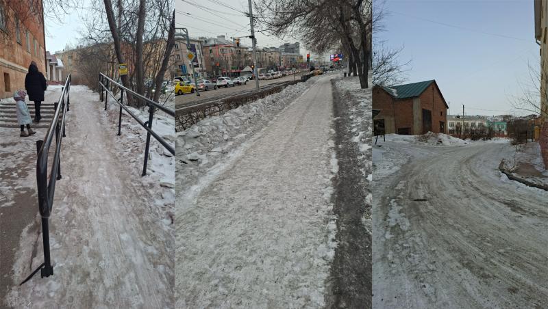 Самое интересное, что обилие снега и льда не зависит от района города. И в центре, и на отшибах ситуация примерно одинаковая. Таких заледенелых и заснеженных дорог давненько мне не приходилось видеть в городах страны. Я уж молчу про нечищенные лестницы, по некоторым из которых подняться можно только ползком или вообще не представляется возможным.