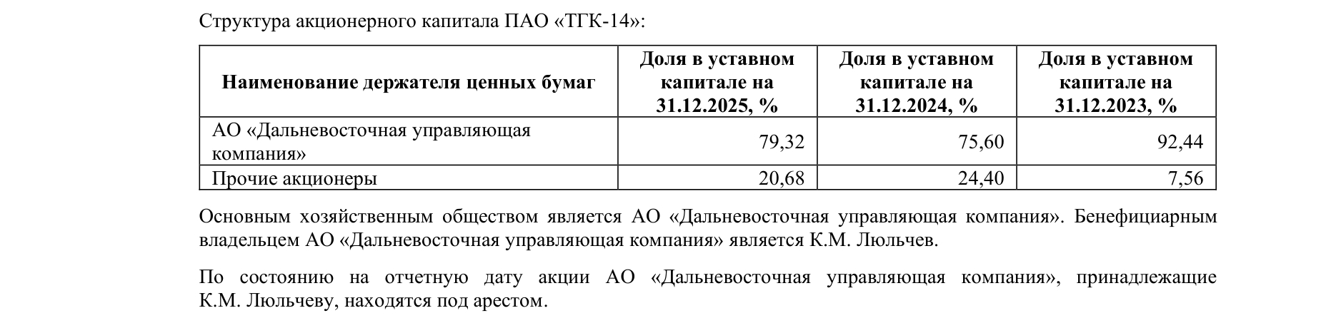 Напомним, в 2022–2024 годах Константин Люльчев и Виктор Мясник управляли ТГК-14 через микрофирму АО «Дальневосточная управляющая компания» (ДУК). Этой структуре принадлежит 79,3 процента акций корпорации. Бизнесмены передавали в Региональную службу по тарифам завышенные данные о расходах ТГК-14, а государственные служащие без лишних вопросов утверждали их. Полученную сверхприбыль владельцы переводили на счета ДУК под видом различных выплат.