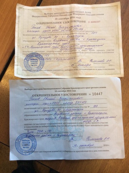На выборах в Госдуму VII созыва в Красноярском крае выдано 2176 открепительных удостоверений. Этот документ удостоверяет право избирателя проголосовать на любом избирательном участке вместо того, к которому он приписан по месту постоянной или временной регистрации.