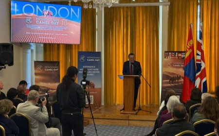 10 апреля в Лондоне прошло мероприятие «День монгольского верблюда». Об этом сообщает ИА «Монцамэ». В рамках события устроили показ монгольской национальной одежды и выставку-ярмарку изделий из шерсти и кашемира, а также провели лекцию о пользе верблюжьего молока.