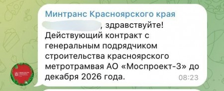 Министерство транспорта Красноярского края ответило на вопрос о сроках строительства метротрама. Комментарий ведомства не прояснил ситуацию. Напомним, что 13 февраля красноярец спросил у мэра Сергея Верещагина в соцсетях о судьбе проекта.