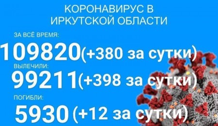 По данным оперштаба Иркутской области на утро 1 октября, в регионе зарегистрировано 109820 официально подтверждённых случаев заболевания коронавирусом. Прирост за сутки составил 380 человек, в том числе 63 ребёнка. Всего в Прибайкалье болеет коронавирусом 779 детей.