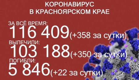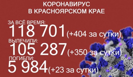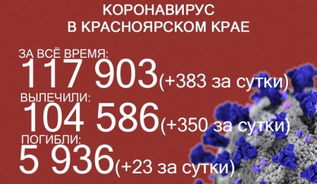 5 октября число ковидных смертей в Красноярском крае достигло 5936, за последние сутки скончались 23 больных коронавирусом. За сутки выявили ещё 383 заболевших. За всё время пандемии COVID-19 выявили у 117 903 жителей края. Выздоровело 104 586 человек, в том числе 350 за последние сутки.