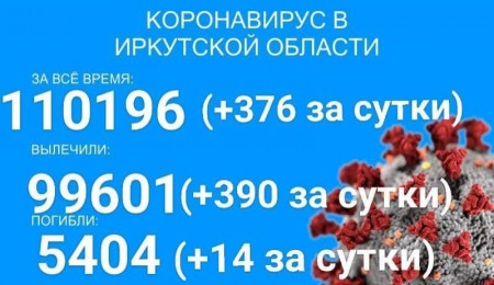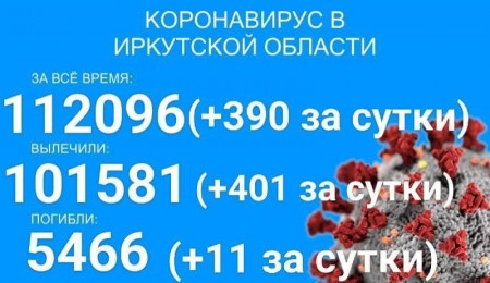 По данным оперштаба Иркутской области на утро 7 октября, в регионе зарегистрировано 112096 официально подтверждённых тестами ПЦР случаев заболевания коронавирусом. Прирост за сутки составил 390 новых случаев, в том числе пятеро вахтовиков и 59 детей.
